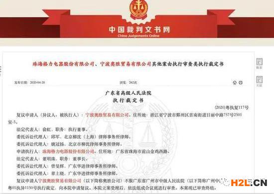 5月11日,中國裁判文書網資料顯示,廣東省高級人民法院宣布維持原判,認定寧波奧勝貿易有限公司(原寧波奧克斯空調有限公司)惡意侵權成立,判決后者向珠海格力電器股份有限公司賠償4000萬元。至此,歷時3年多的格力訴奧克斯侵犯專利權一案終于塵埃落定。