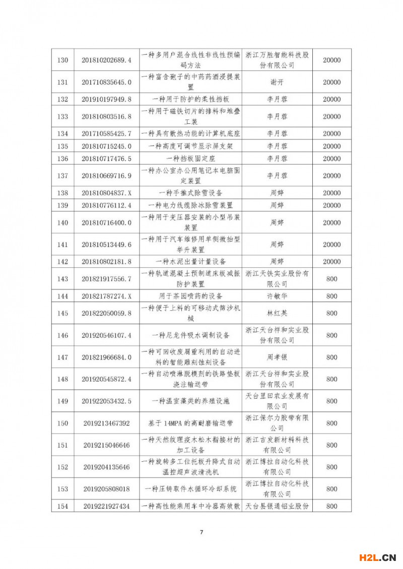 根據(jù)《關(guān)于開展2020年度專利獎勵申報(bào)的通知》(天市監(jiān)〔2020〕129號)、《關(guān)于加快推進(jìn)制造業(yè)高質(zhì)量發(fā)展的若干意見》(天政辦發(fā)〔2020〕25號)、《天臺縣專利獎勵辦法》(天政辦發(fā)〔2018〕68號)等文件精神。通過企業(yè)自主申報(bào),縣市場監(jiān)督管理局形式審核,現(xiàn)將符合條件的獎勵清單公示如下。