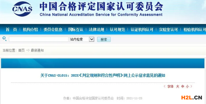 中國合格評定國家認可委員會(CNAS)組織修訂了CNAS-GL015:202X《判定規則和符合性聲明》。現將修訂的征求意見稿在網上公示,征求社會各方的意見和建議。相關機構和人員如有任何意見,請填寫“附件3:《CNAS文件意見征詢表》”,并于2021年12月10日前反饋CNAS秘書處。
