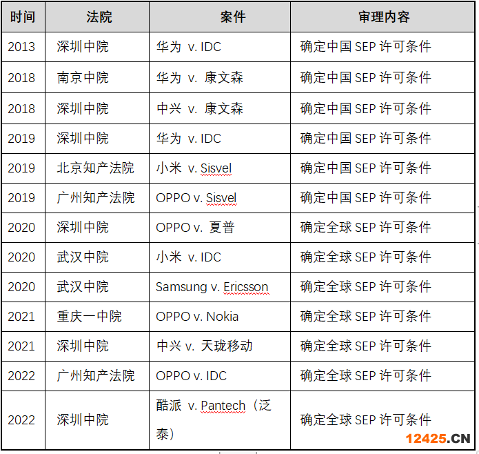 表2 目前公開的中國法院審理的確定SEP許可條件案件