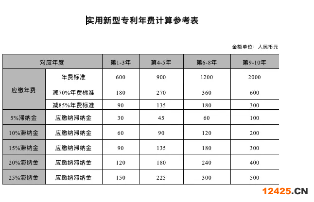 外觀設(shè)計(jì)專利年費(fèi)參考表